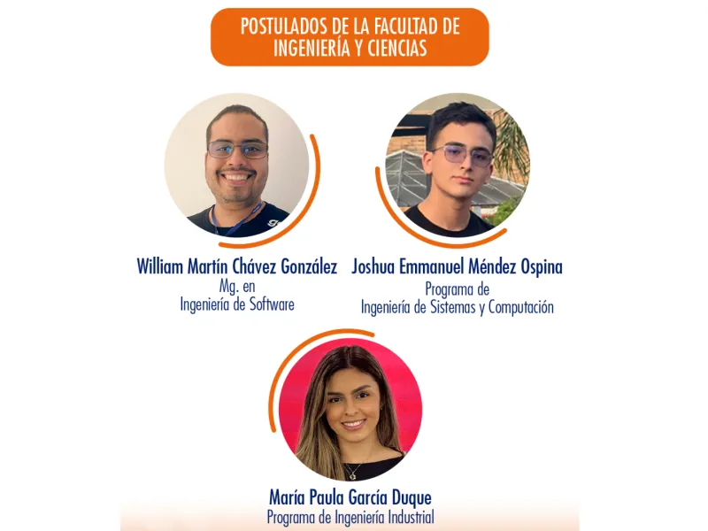 Facultad de Ingeniería y Ciencias: William Martín Chávez González, Joshua Emmanuel Méndez Ospina y María Paula García Duque.